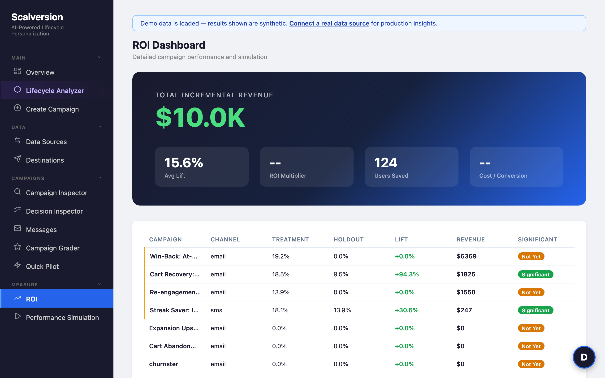 Scalversion does two things that don't exist together today: AI that writes a unique email for every customer from their real behavioral data, and holdout-based measurement that proves whether those emails made you money you wouldn't have gotten otherwise. Then it feeds those learnings back in. Next campaign's better.